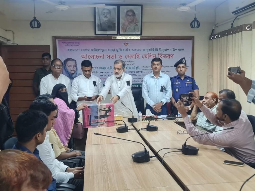 রাউজানে বঙ্গমাতা ফজিলাতুন নেছা মুজিবের ৯৩তম জন্মবাষির্কীর অনুষ্ঠান থেকে দুস্থ নারীদের মাঝে সেলাই মেশিন বিতরণ ও গরীব রোগাক্রান্ত মানুষের চিকিৎসার জন্য টাকার চেক বিতরণ করেছেন সংসদ সদস্য এবিএম ফজলে করিম চৌধুরী। তিনি গতকাল ৮ আগস্ট এই অনুষ্ঠানে প্রধান অতিথির বক্তব্য রাখতে গিয়ে বলেছেন জাতির জনক বঙ্গবন্ধু শেখ মুজিবর রহমানের সকল সংগ্রামে অনুপ্রেরণা ছিল এই মহোসয়ি নারীর।