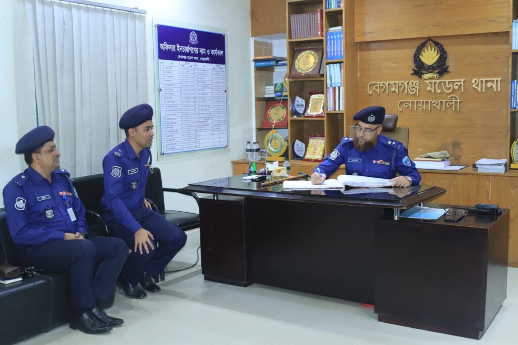 বেগমগঞ্জ মডেল থানায় সেবা পরিস্থিতি সরেজমিনে পর্যালোচনা দিনের শুরুতেই পুলিশ সুপার বেগমগঞ্জ মডেল থানার বিভিন্ন শাখা ঘুরে দেখেন।থানায় আগত সাধারণ মানুষের সঙ্গে তিনি কথা বলেন, শোনেন অভিযোগ-হয়রানি, দেরি, অসুবিধা-এবং তাৎক্ষণিক সমাধানের দিকনির্দেশনা দেন।তিনি স্পষ্টভাবে বলেন-জনগণের প্রতি সেবাই পুলিশের মূল দায়িত্ব। হয়রানিমুক্ত, দ্রুত ও দায়িত্বশীল সেবা দিতে হবে। কোন অবহেলা বরদাশত করা হবে না।পরিদর্শনের সময় তিনি নজর দেন-ডিউটি রোস্টার ও দায়িত্ব বণ্টনের কার্যকারিতা তদন্তাধীন মামলার অগ্রগতি থানার সেবা ডেস্ক ও বেটার স্মার্ট সার্ভিস সেল অপরাধ দমন ও মাদক নিয়ন্ত্রণে পুলিশের তৎপরতা পুলিশ সুপার পরিদর্শন বইতে স্বাক্ষর করেন এবং কর্মকর্তাদের সেবা-মান আরও উন্নত করার জন্য কড়া নির্দেশনা দেন।